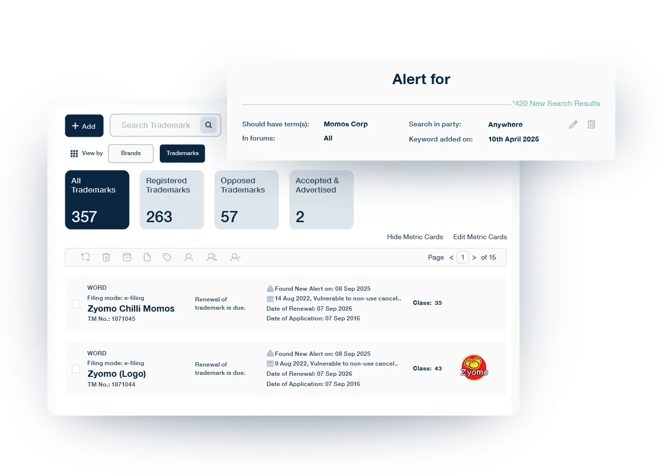 Identify potential infringements: You can set an intellectual property (IP) watch to detect similarities between your registered patents or trademarks and any new ones another individual or entity may have filed for. This helps you take proactive steps against anyone trying to infringe on your clients’ IP and manage their IP portfolios efficiently.